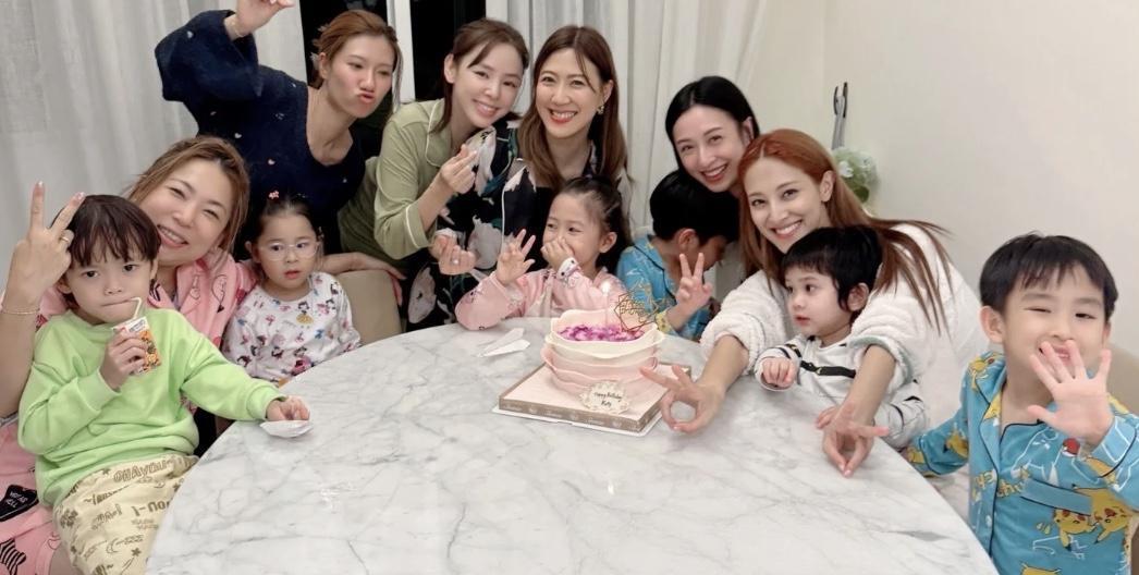 而一旁的陈凯琳算作三个孩子的母亲,情景亦然不比寿星龚嘉欣差,她怀里抱着小女儿,笑的很感奋。